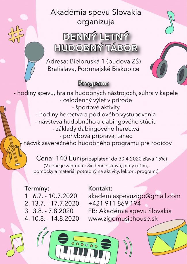 Letné denné táboryNezaradenéBy Monika Adamovič27. januára 2020OZNAM: LETNÉ TÁBORY POČAS LETA 2020 NEBUDÚ